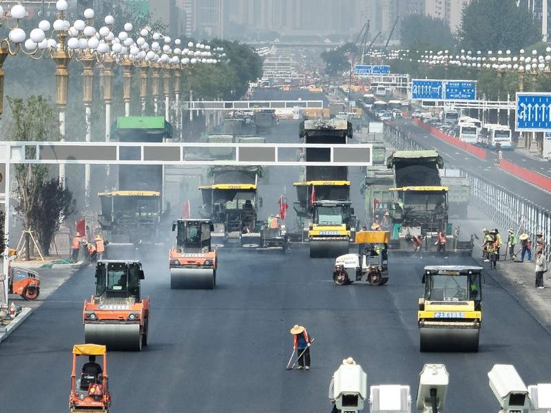 面對(duì)全長(zhǎng)4.3公里的施工戰(zhàn)線,租賃公司和路面公司展現(xiàn)了高度的專(zhuān)業(yè)協(xié)作與責(zé)任擔(dān)當(dāng)。租賃公司科學(xué)調(diào)度大量大型機(jī)械設(shè)備,包括銑刨機(jī)、壓路機(jī)和攤鋪機(jī)等,按照施工計(jì)劃分批次進(jìn)場(chǎng),確保了“分段流水、平行作業(yè)”模式的高效運(yùn)轉(zhuǎn)。通過(guò)精準(zhǔn)匹配機(jī)械供應(yīng)與作業(yè)面規(guī)劃,他們?yōu)楣こ烫峁┝藞?jiān)實(shí)的設(shè)備保障,同時(shí)嚴(yán)格執(zhí)行機(jī)械操作安全規(guī)程,有效管控高風(fēng)險(xiǎn)作業(yè)環(huán)節(jié)。在機(jī)械設(shè)備充足的同時(shí),路面公司聚焦道路施工的質(zhì)量與精細(xì)化管理。在完成地下管網(wǎng)改造工程后,他們迅速推進(jìn)路面工程施工進(jìn)度,實(shí)施水穩(wěn)、瀝青鋪筑工作。面對(duì)高溫和雨季的持續(xù)挑戰(zhàn),路面公司施工人員堅(jiān)守一線,嚴(yán)格把控每道工藝,以精益求精的施工質(zhì)量和爭(zhēng)分奪秒的施工速度圓滿(mǎn)完成施工任務(wù),完成全線水穩(wěn)和瀝青的攤鋪工作。租賃公司和路面公司通過(guò)與施工單位的緊密配合,展現(xiàn)了同心協(xié)力、協(xié)同作戰(zhàn)的施工風(fēng)采,助力迎澤大街(西段)煥新升級(jí),彰顯了太原市政集團(tuán)的專(zhuān)業(yè)水準(zhǔn)與責(zé)任使命。