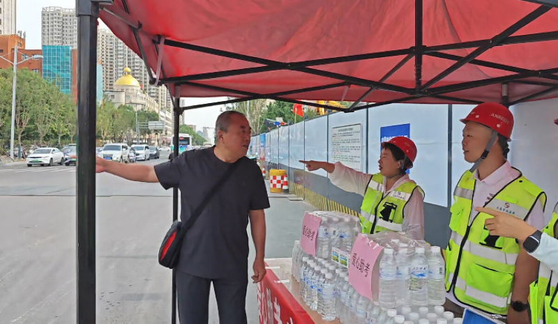 施工過(guò)程中,太原市政集團(tuán)作為主要施工單位,積極統(tǒng)籌協(xié)調(diào),主動(dòng)與園林、電力、自來(lái)水、熱力等平行施工單位溝通,在全力推進(jìn)工程進(jìn)度的同時(shí),為各參建單位留好施工作業(yè)面,合理安排平行、交叉作業(yè),確保工程順利推進(jìn),跑出施工“加速度”。為妥善平衡民生保障與工程建設(shè)雙重需求,太原市政集團(tuán)主動(dòng)擔(dān)當(dāng)、積極作為,主動(dòng)聯(lián)動(dòng)交通、城管等部門(mén),采取多項(xiàng)舉措,避免影響周邊居民的正常生活。在施工中遵循“修路不添堵”原則,精心制定交通組織方案,設(shè)置應(yīng)急通道、便民通道和低噪音設(shè)備,并安排交通協(xié)管員在地鐵口等關(guān)鍵部位現(xiàn)場(chǎng)指揮、引導(dǎo)行人,為市民出行提供便利條件,將“讓市民少繞一米路,少踩一個(gè)水坑”融入深夜巡查便道安全的腳步,化作施工與民生和諧共生的溫暖注腳;實(shí)施“半幅施工+分段施工+動(dòng)態(tài)導(dǎo)改”策略,與交警部門(mén)合作,優(yōu)化交通信號(hào)燈配時(shí),有效緩解施工對(duì)市民出行的影響;中高考期間,積極開(kāi)展“為夢(mèng)護(hù)航 愛(ài)心助考”志愿服務(wù)活動(dòng),全線工地按下“靜音鍵”,在關(guān)鍵路口設(shè)立助考點(diǎn),配備礦泉水、防暑降溫藥品等,并為考生開(kāi)放綠色通道,以實(shí)際行動(dòng)助力中高考;在施工現(xiàn)場(chǎng)設(shè)置安全警示標(biāo)志和施工公告牌,及時(shí)告知市民施工進(jìn)展和注意事項(xiàng),增強(qiáng)市民對(duì)施工的理解和支持;組織施工人員進(jìn)行城市家具的及時(shí)進(jìn)場(chǎng)和質(zhì)量檢驗(yàn)工作,在全線開(kāi)展城市家具安裝作業(yè),將一批兼具現(xiàn)代風(fēng)格與太原特色的公交站臺(tái)、休閑座椅、分類(lèi)垃圾箱等設(shè)施安裝到位,這些融合功能與美學(xué)的城市家具,已成為迎澤大街沿線的新亮點(diǎn),不僅提升了城市空間的品質(zhì),更展現(xiàn)出太原深厚的人文關(guān)懷與現(xiàn)代城市風(fēng)貌。全體施工人員以高度的責(zé)任感和使命感,將品質(zhì)與關(guān)懷融入到每一個(gè)細(xì)節(jié)中,用實(shí)際行動(dòng)詮釋了“以人為本,和諧共建”的施工理念。