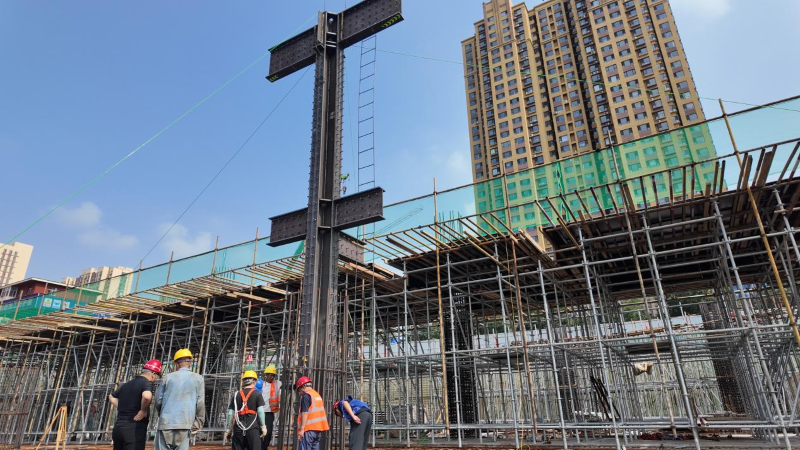 六十二中新校區(qū)“空中操場”完成鋼柱、鋼梁吊裝和焊接工序