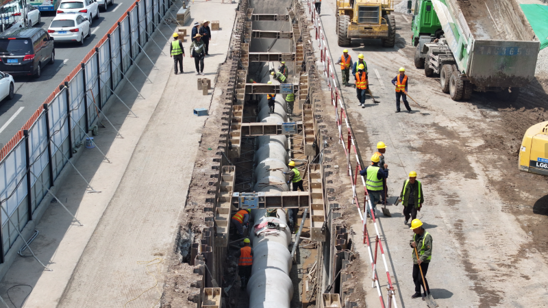 太原市政集團(tuán)堅(jiān)決扛牢使命擔(dān)當(dāng),強(qiáng)化統(tǒng)籌、多方聯(lián)動(dòng),想盡一切辦法,克服一切困難,全面對(duì)標(biāo)看齊“迎澤標(biāo)準(zhǔn)”,堅(jiān)持以全局觀念和系統(tǒng)思維謀劃推進(jìn)項(xiàng)目建設(shè),采用半幅封閉施工、平行流水作業(yè)方式,克服工程體量大、施工內(nèi)容繁重、建設(shè)工期緊張等困難與挑戰(zhàn),一體推進(jìn)道路、管線、照明、沿線景觀等建設(shè)任務(wù)。項(xiàng)目伊始,規(guī)劃“導(dǎo)航圖”,研討節(jié)點(diǎn)安排、工序銜接、資源配置等關(guān)鍵環(huán)節(jié),制定十余套專項(xiàng)施工方案,優(yōu)化組織設(shè)計(jì),形成管理閉環(huán);繪制“進(jìn)度表”,建立分級(jí)負(fù)責(zé)、動(dòng)態(tài)調(diào)整的進(jìn)度管控體系,提升9個(gè)工區(qū)自主管理效能,錨定工期目標(biāo),加快施工效率。施工過程中,掃清“攔路虎”,采用鋼板樁支護(hù)、分層開挖、放坡開挖工藝,克服地下管線復(fù)雜、開挖深度大、地下水高等難點(diǎn),確保管網(wǎng)升級(jí)與地鐵運(yùn)營和諧并行;保持“攻堅(jiān)態(tài)勢”,針對(duì)重難點(diǎn)部位,提前制定專項(xiàng)方案,全部進(jìn)行技術(shù)交底,著重加強(qiáng)安全、質(zhì)量管控,形成高效施工態(tài)勢。注重以人為本,提升“施工溫度”,細(xì)化各項(xiàng)便民、利民措施,最大限度降低對(duì)市民日常生活的影響,保障通行需求;擦亮“市政名片”,開展道路清理志愿服務(wù)活動(dòng),用實(shí)際行動(dòng)為城市“美容”,展現(xiàn)國企擔(dān)當(dāng)。